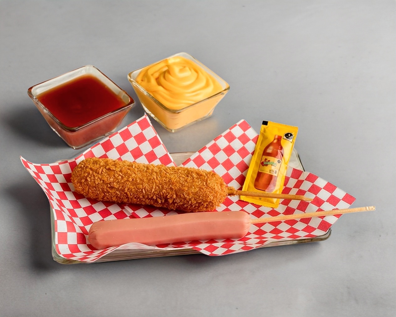 Banderilla estilo coreano, solamente salchicha.
