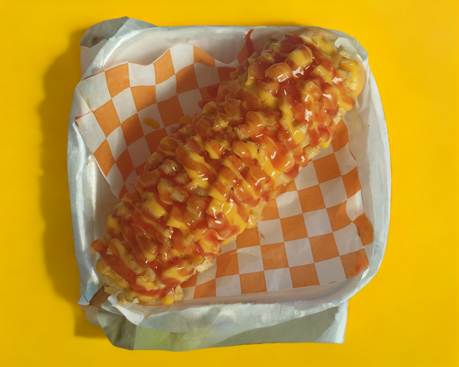 Banderilla Coreana de Salchicha Cubierta de Papa*1 + Banderilla Flaming Hot de Salchicha*1