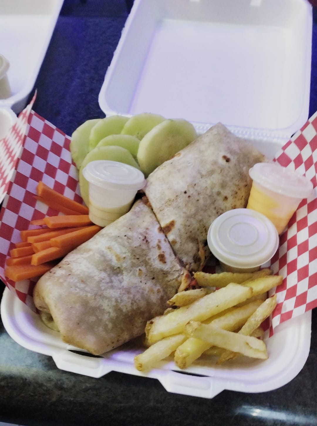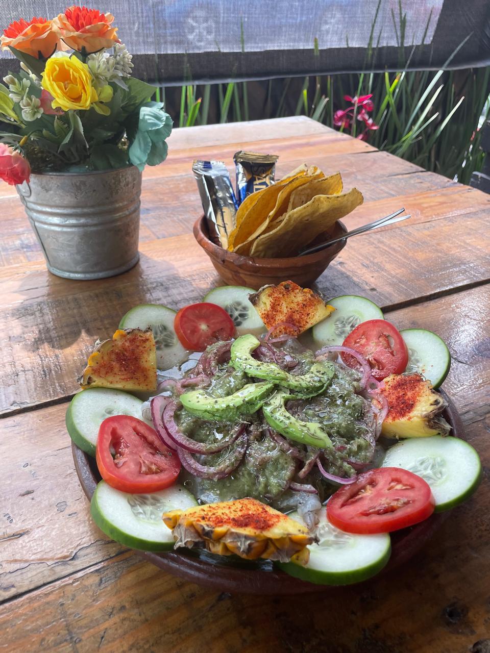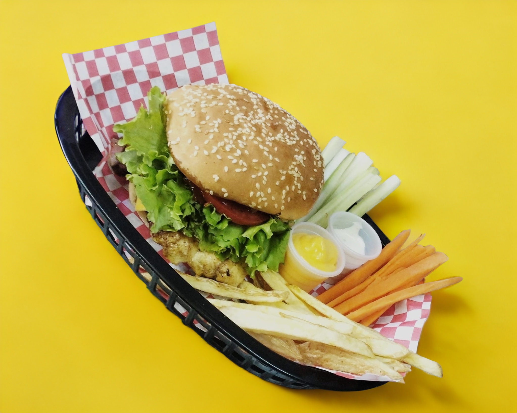 150 g de carne de res, piña, lechuga, queso manchego, jamón, jitomate, cebolla.