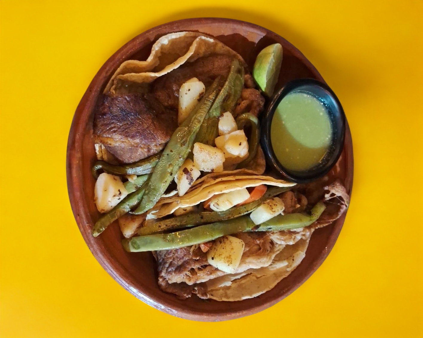150 g de carne de res, lechuga, queso manchego, jamón, jitomate, cebolla.