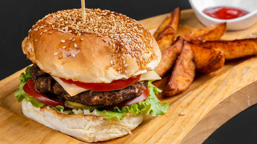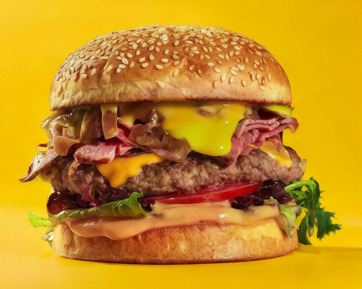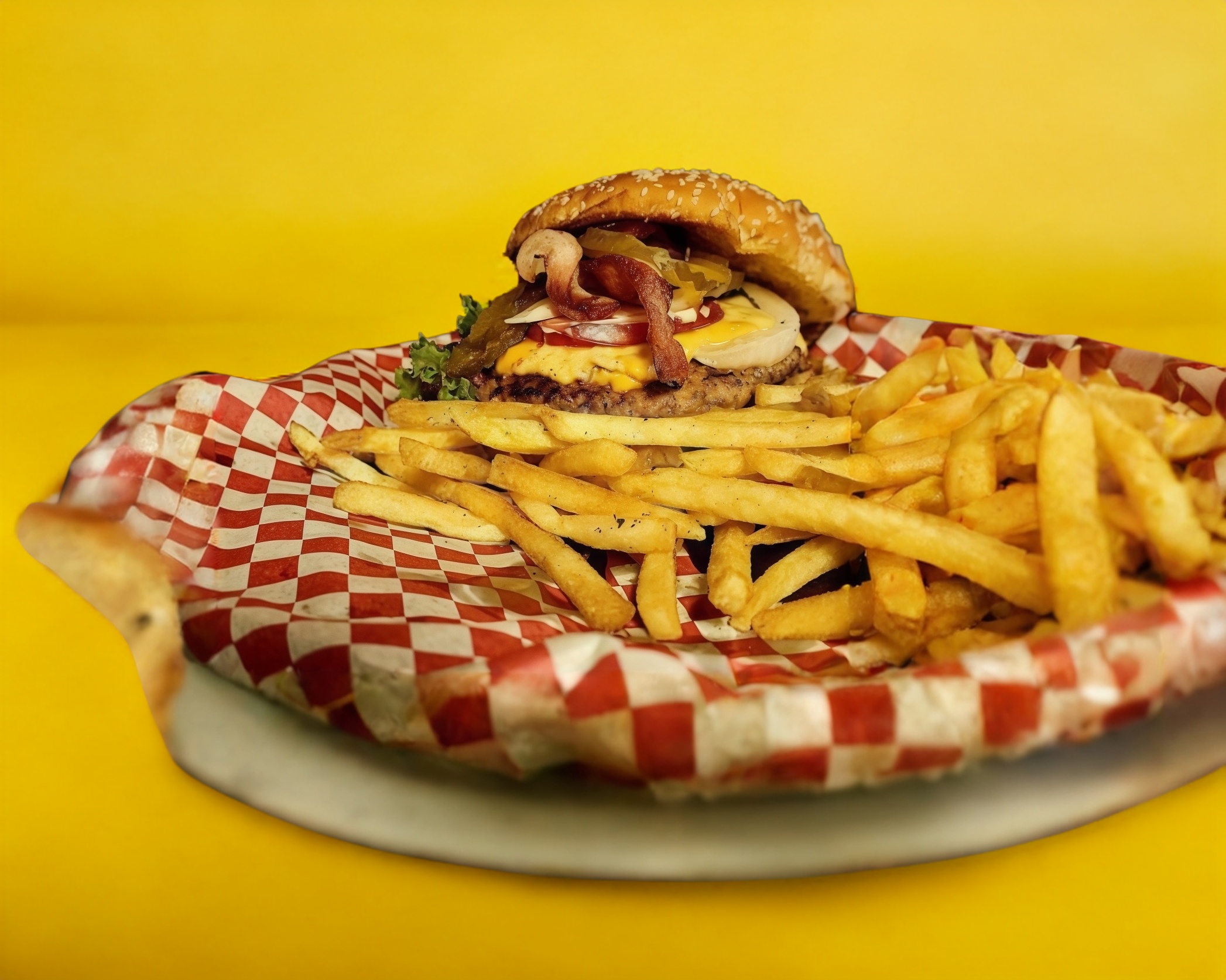 Carne de res, tocino, mix de quesos derretidos en pan brioche.