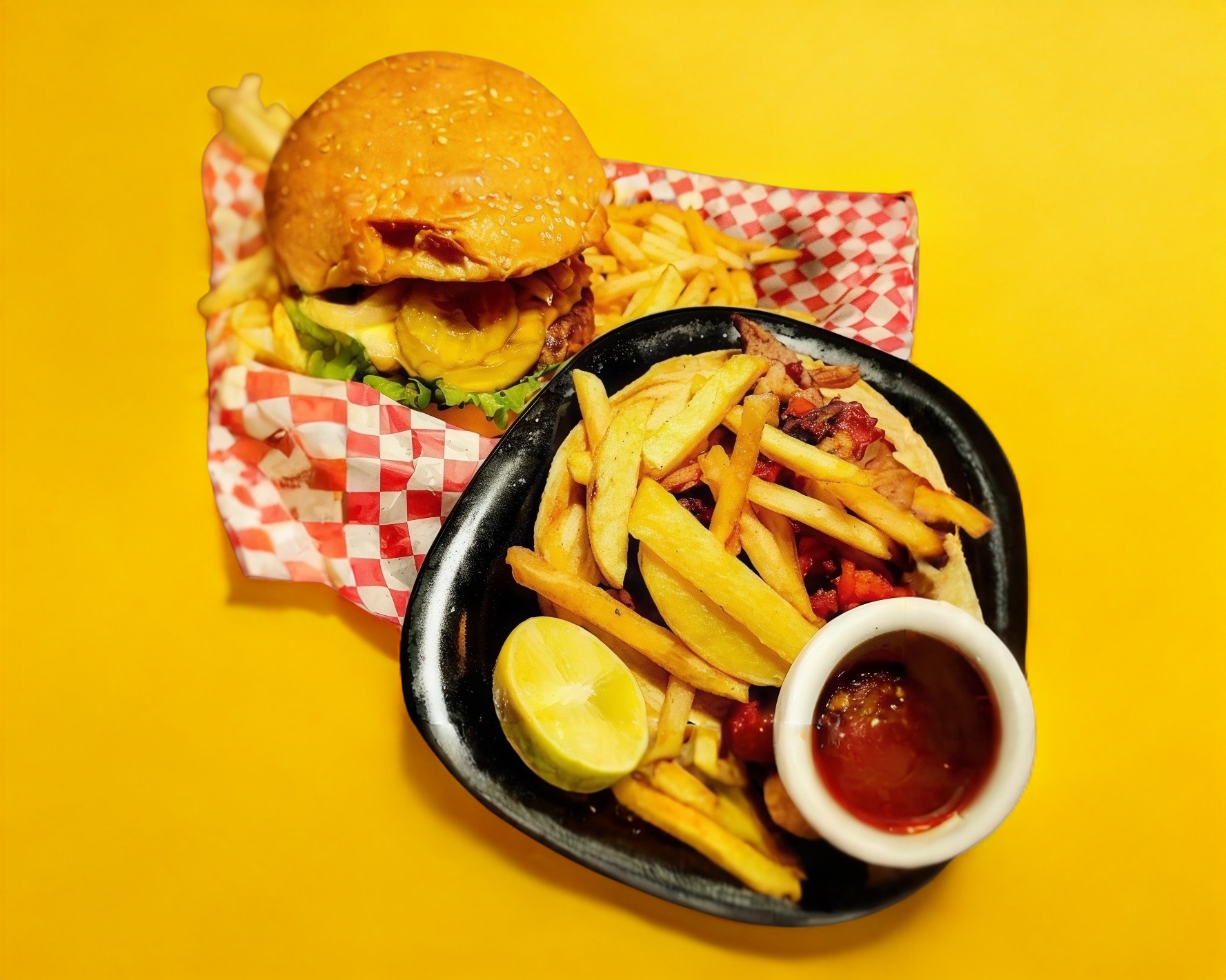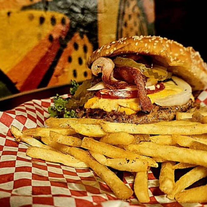 Carne de sirlion, tocino, mix de quesos derretidos en un pan brioche.