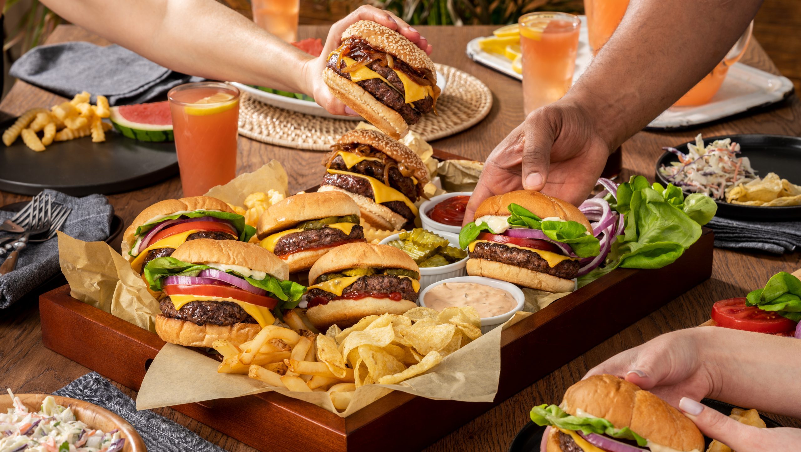 1 Orden de nuestras famosas alitas (8 pzas), 1 hamburguesa de sirlion y 4 latones de cerveza 455 ml