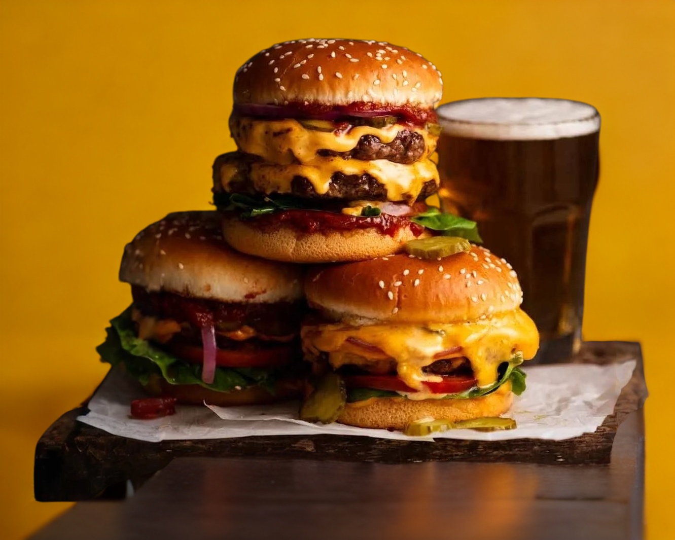 4 Hamburguesas de pollo con queso y 4 latones de cerveza 455 ml