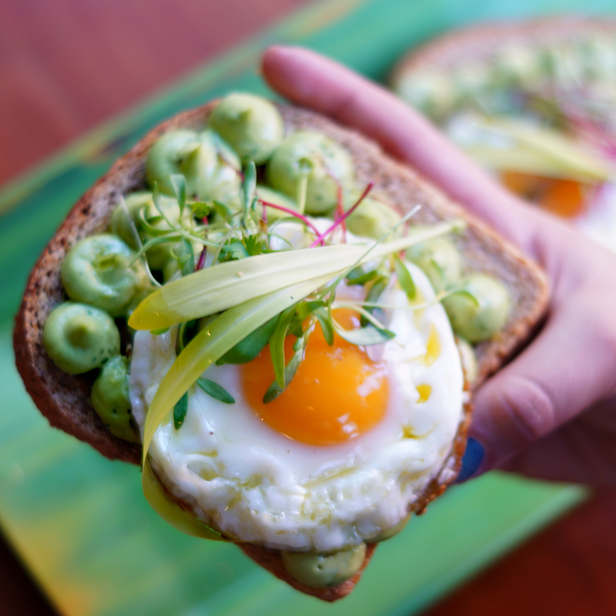 PAN EZEQUIEL AGUACATE , HUEVO COCIDO ,BROTES DE BETABEL Y ACEITE DE TRUFA