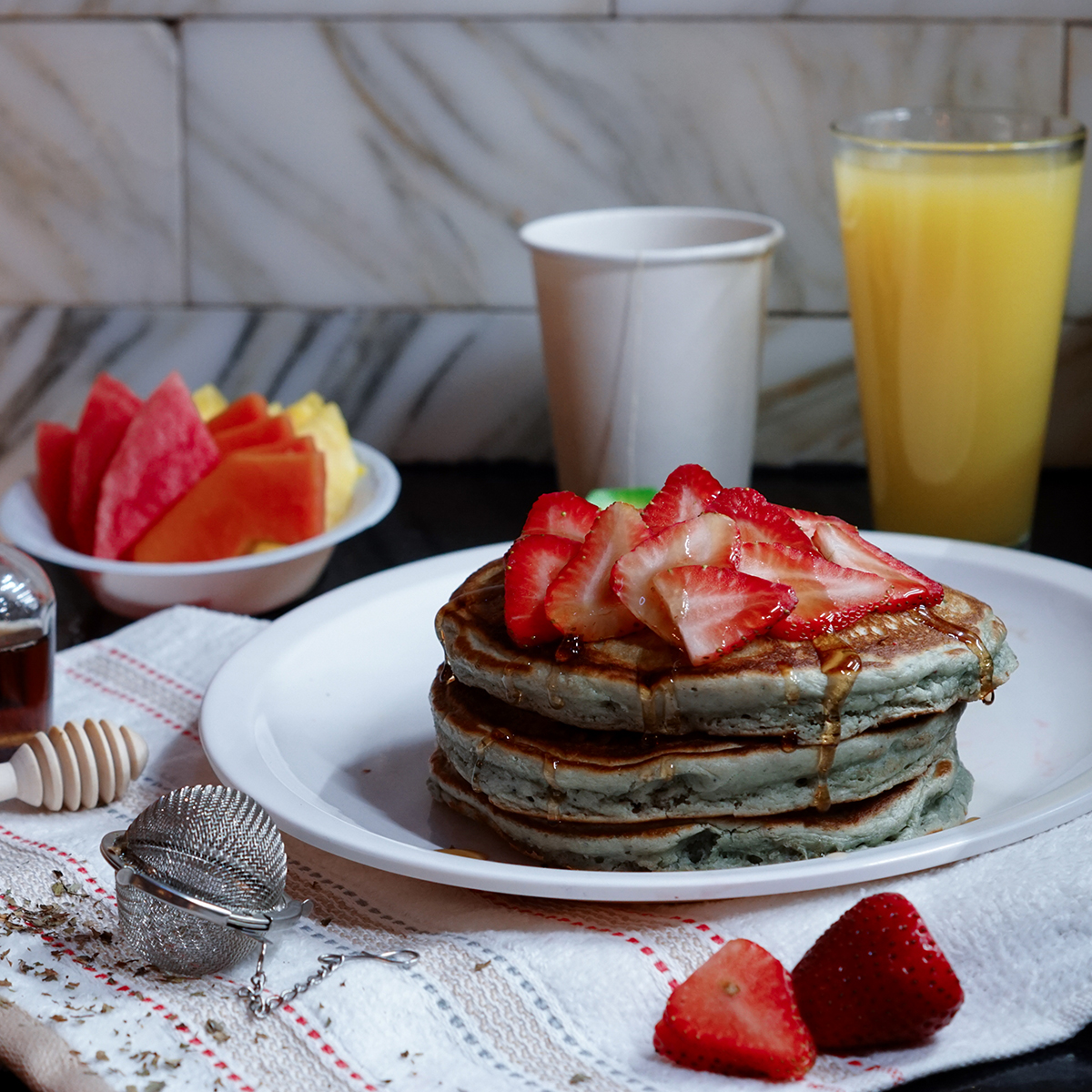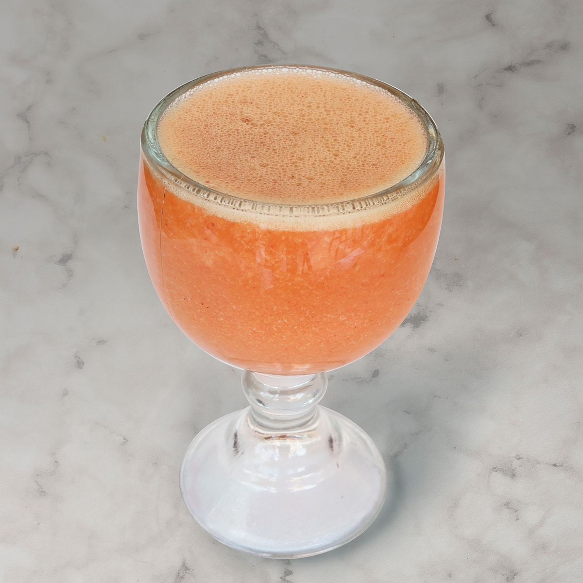 Mango, fresa, zarzamora, jugo de naranja y camilina.