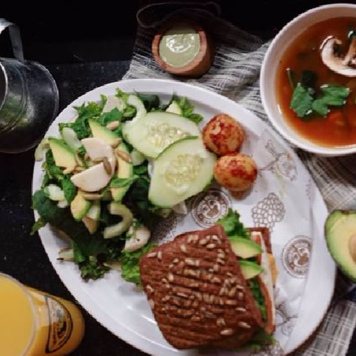 PAN EZEQUIEL ,AGUACATE ,QUINOA,MEZCLA DE PIMIENTOS ,BROTES DE BETABEL,CILANTRO Y MAIZ