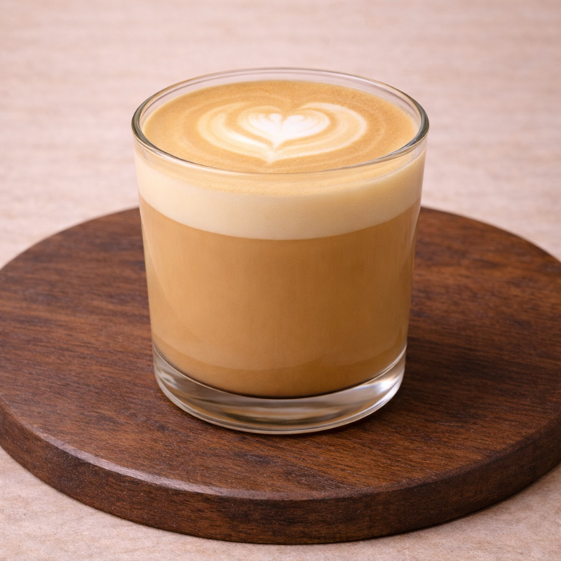Café a base de expresso, leche entera al vapor y espuma