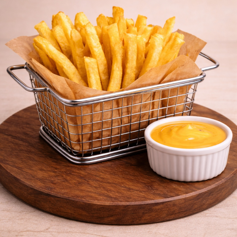 Papas a la Francesa de 300 G Gratinadas con Queso Oaxaca y Queso Líquido.