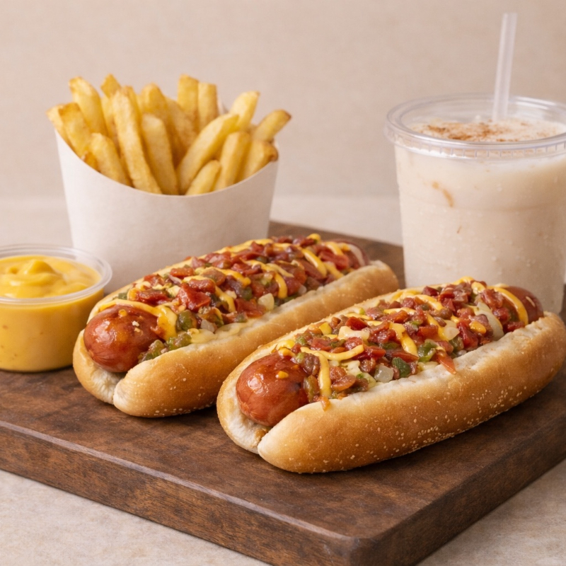 2 Hot Dogs, 1 Snack y 1 Bebida.