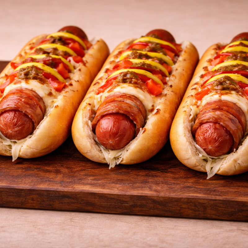 3 Hot Dogs con Tocino