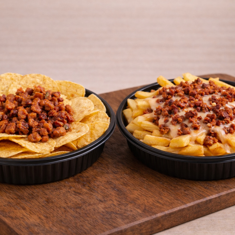 1 Orden de Nachos con Carne al Pastor y 1 Orden de Papas a la Francesa con Porción de Choriqueso.