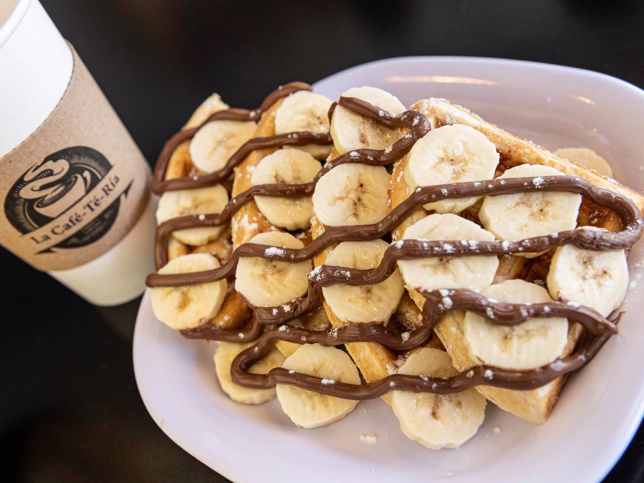 Mezcla de waffle casera, crujiente, acompañado de fruta fresca.