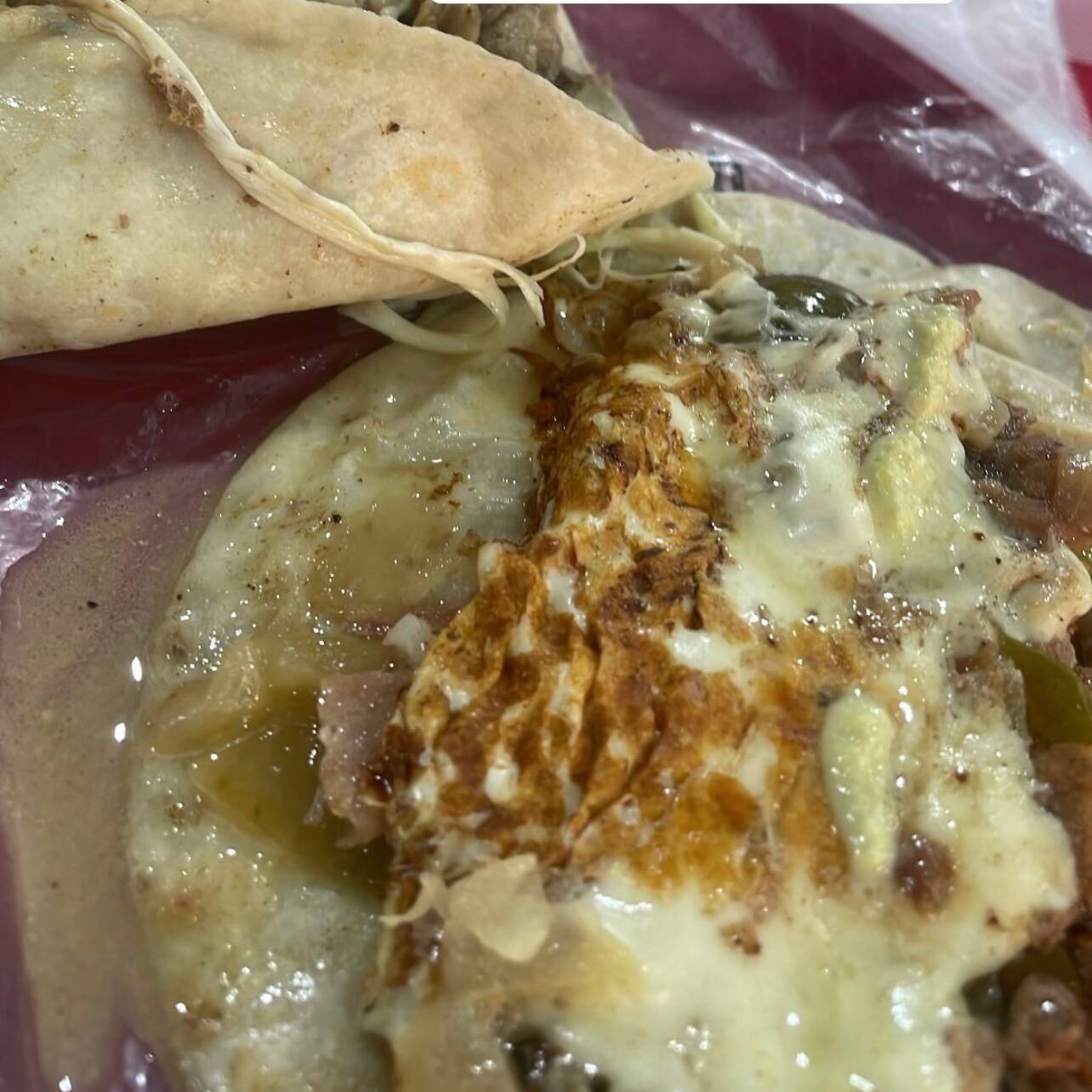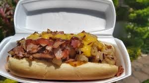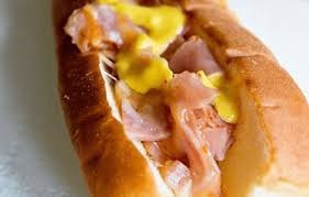 Salchicha , bistec, tocino, queso, jamón dentro de un bolillo.