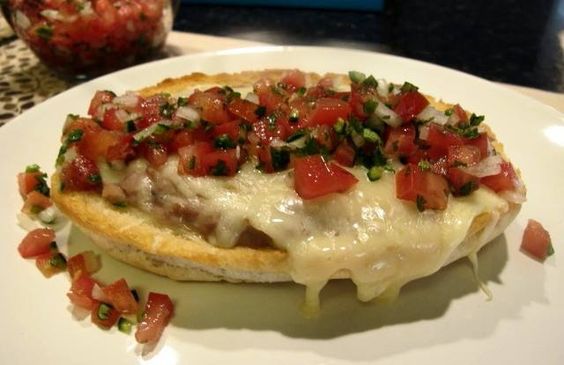 2 mitades de pan con Frijoles, queso oaxaca y pico de gallo.