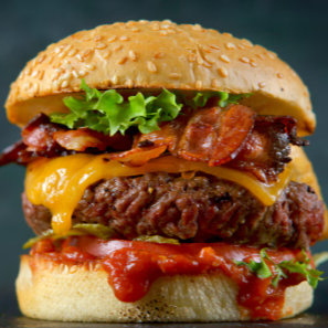 Exquisita carne acompañada de jamón, tocino, queso oaxaca, queso amarillo, queso gouda, lechuga, jitomate y cebolla. Incluye papas.