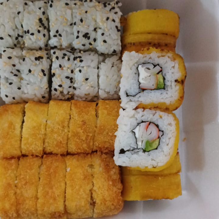 (10 bocados Panamá, 10 bocados de california y 10 bocados de kani fray.)
