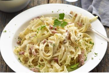 Consistente pasta fusilli bañada den crema de limón real con un toque de ajo y parmesano.