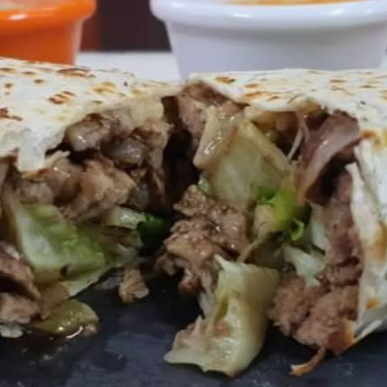 lleva una doradita tortilla gigante burrera,frijoles,lechuga,carne al pastor,queso oaxaca,complentos.LA IMAGEN ES 100 % DE REFERENCIA