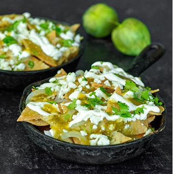 Triángulos de tortilla de maíz fritos hasta obtener una textura crujiente y firme, capaces de absorber la salsa sin deshacerse de inmediato, Elaborada con tomatillos (tomates verdes) hervidos o asados, chiles serranos o jalapeños,carne molida con un toque de suadero exquisito.LA IMAGEN ES SOLO DE REFERENCIA