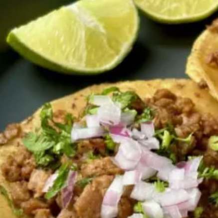 tortilla de mariz tamaño normal recien calentada en comal,acompañada de carne molida con un exelente sazon para darle un sabor unico a suadero,complementos y se recuerda que LA IMAGEN ES SOLO DE REFERENCIA