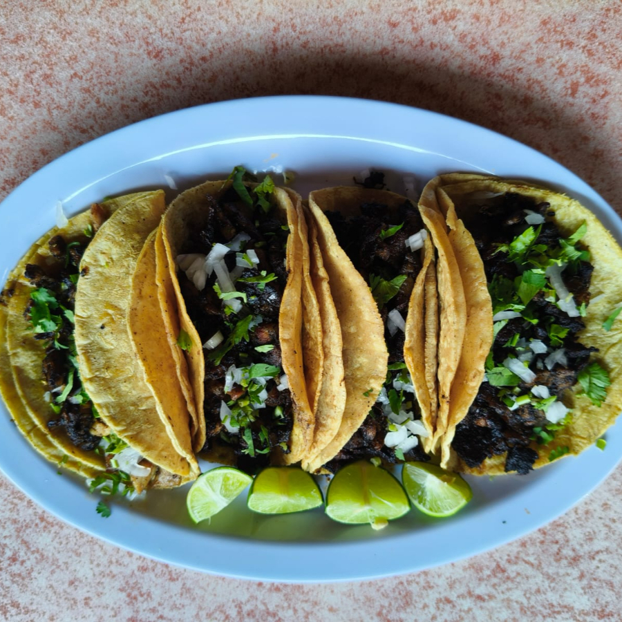 Incluye: salsas, cebollitas moradas encurtidas, frijoles negros refritos, tortillas de maiz, refresco de 2 litros.