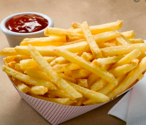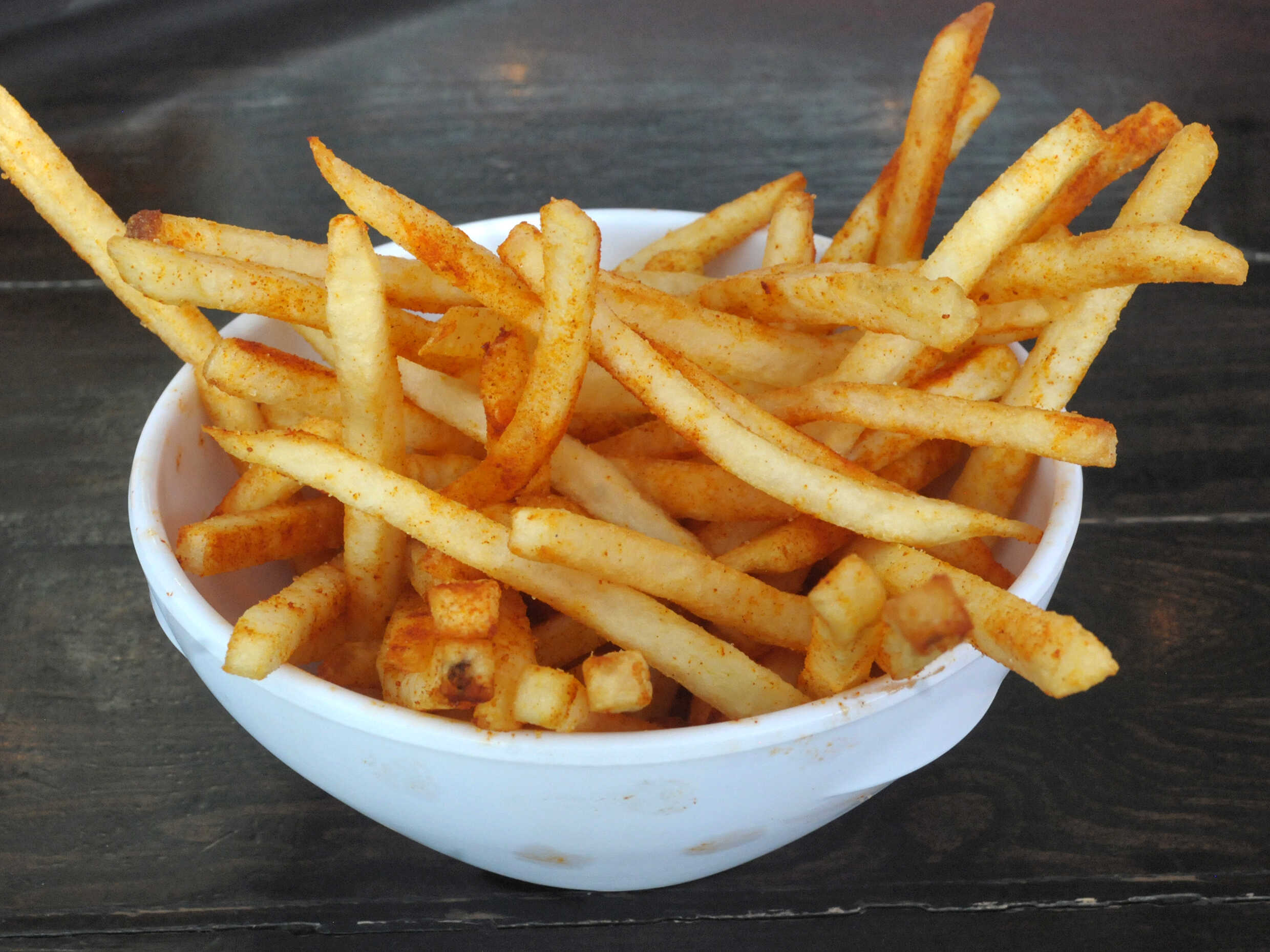 Pechuga de pollo crujiente con salsa de la diabla 150 gr. Acompañada de papas a la francesa.