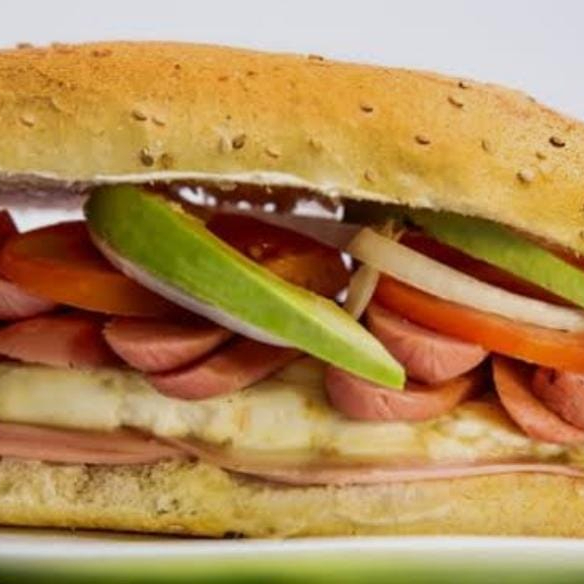 Frijoles refritos, mayonesa,lechuga, jitomate, cebolla, aguacate,rajas o chipotle