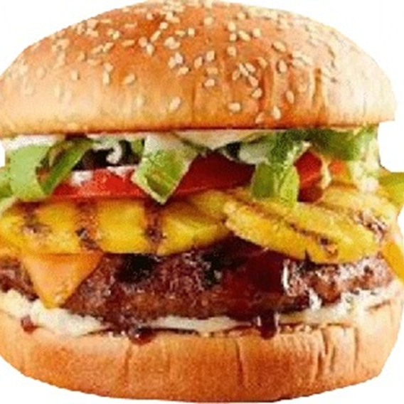 pan brioche ,carne 100% de res ,piña acompaña de lechuga ,jitomate ,cebolla ,capsu ,mayonesa ,moztaza y rajas