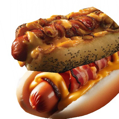 pan ,salchicha y tocino acompañado de mayonesa ,jitomate ,cebolla captsu ,moztaza y rajas