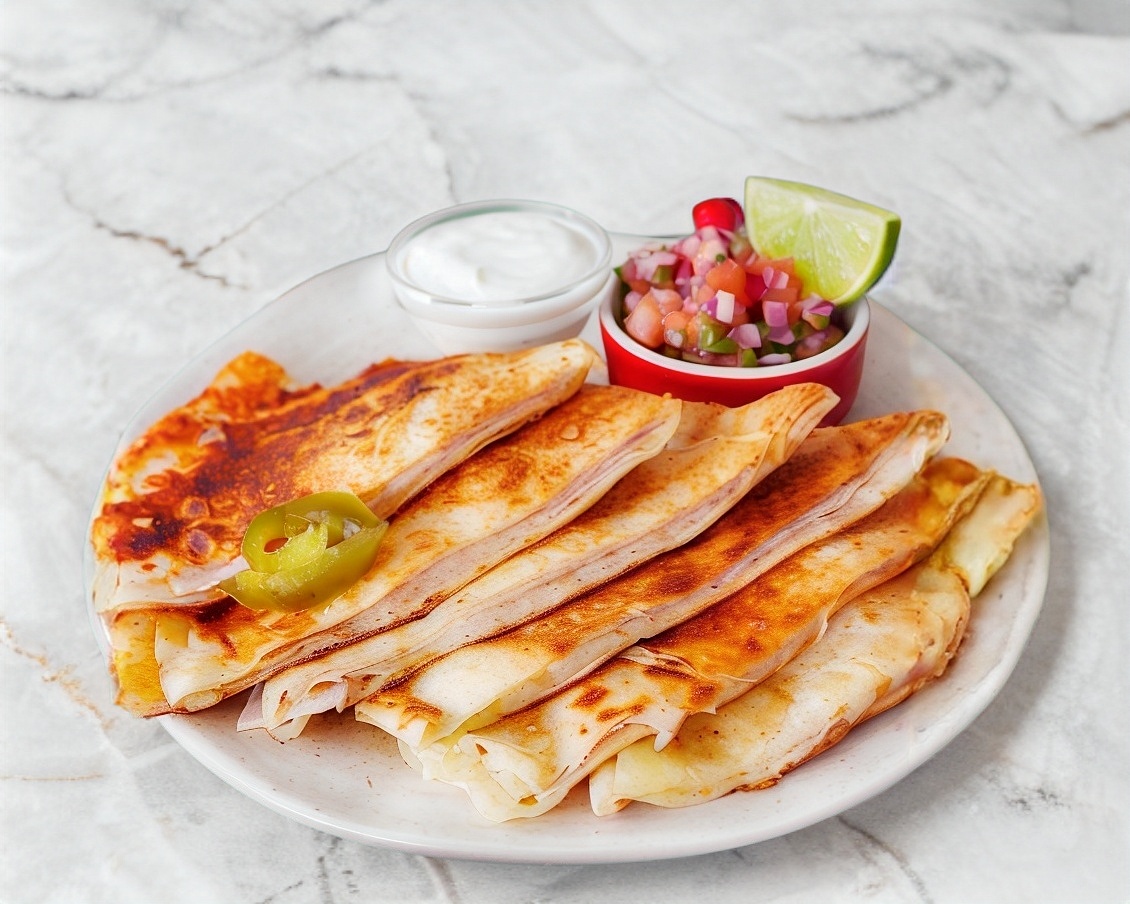 Gringa de tortilla de harina con queso acompañadas de una porcion de papas fritas