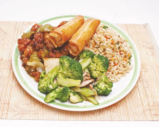 Arroz o Pasta + Costillas a la BBQ + Combinación China + 1 Rollito