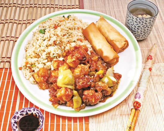 Arroz o Pasta + Pollo Cantones +Combinación China