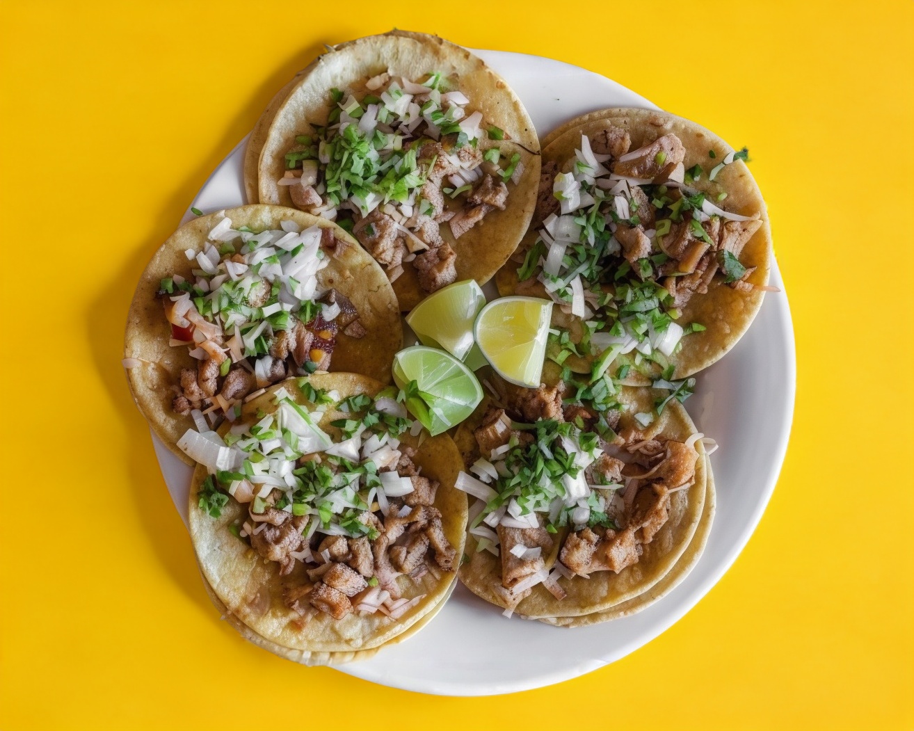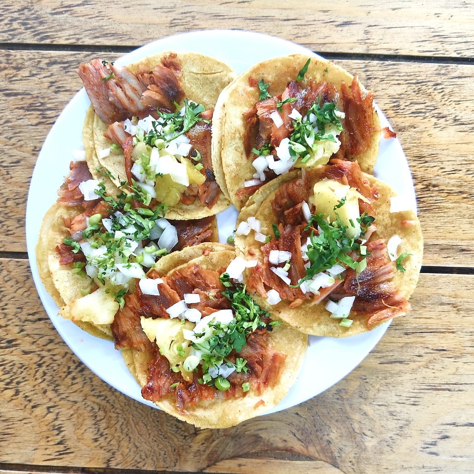 1 kilo de pastor, verdura, piña, 1/2 kilo de tortillas, salsas y limones