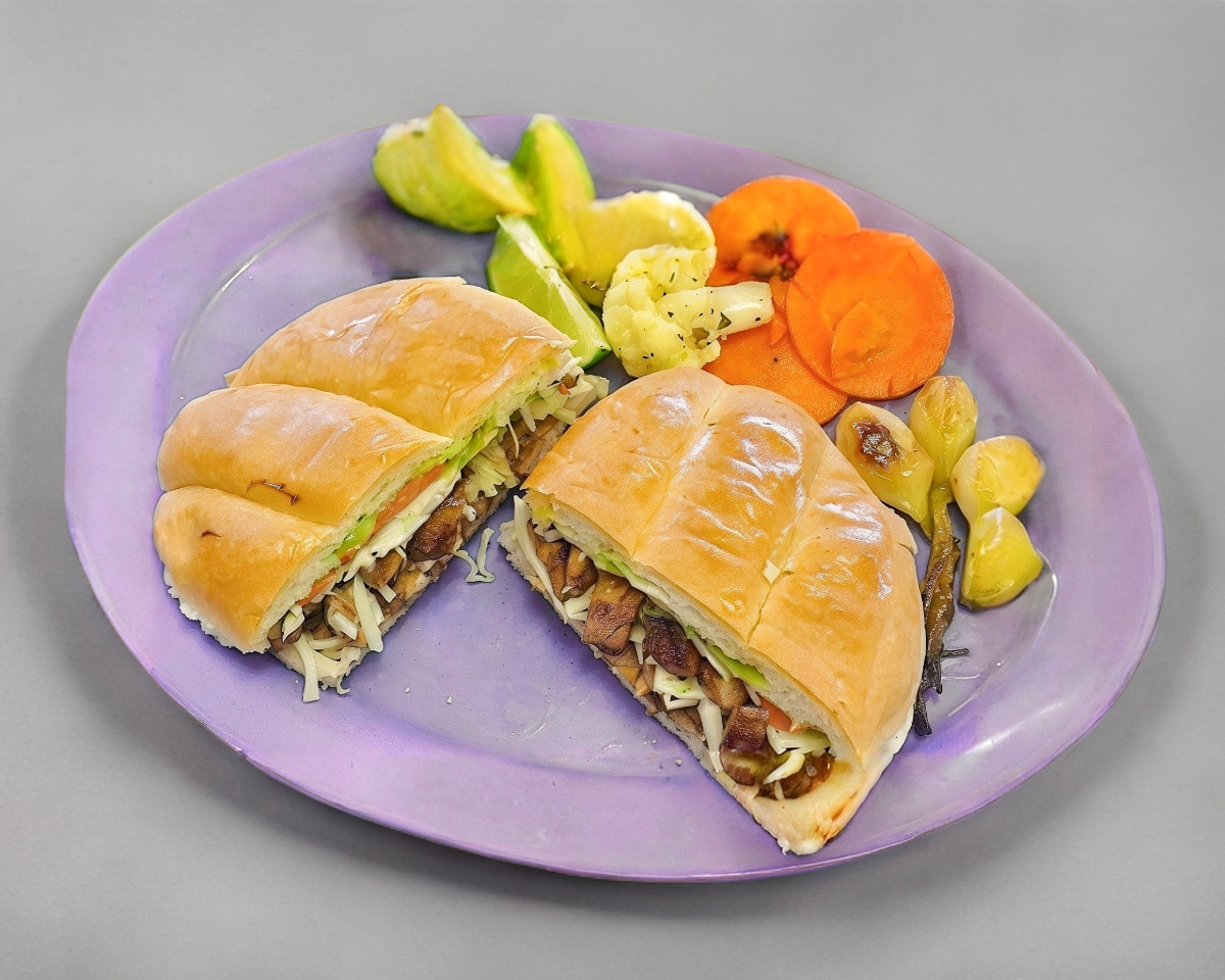 pastor queso, mayoneza, frijoles, cebolla, jitomate y aguacate