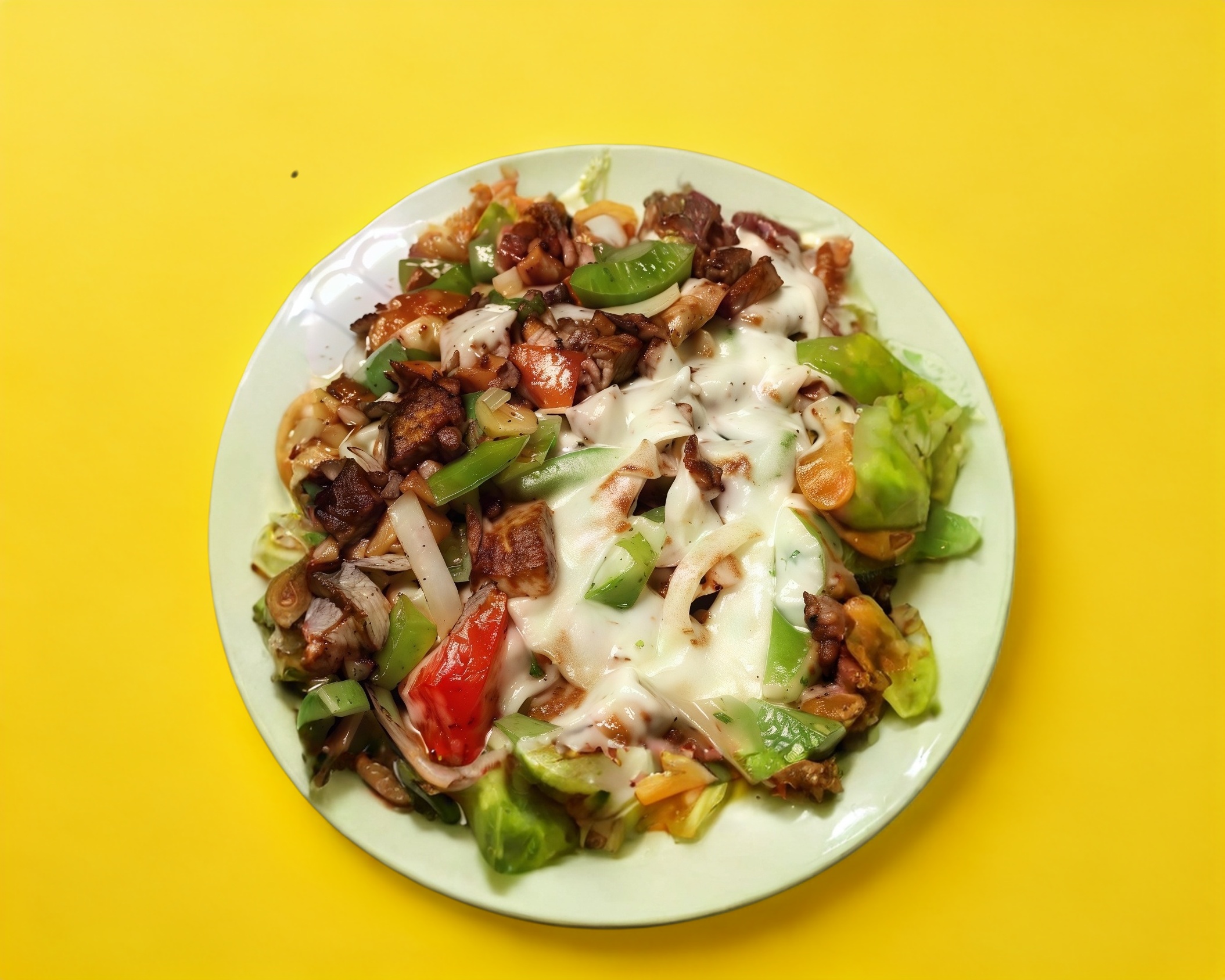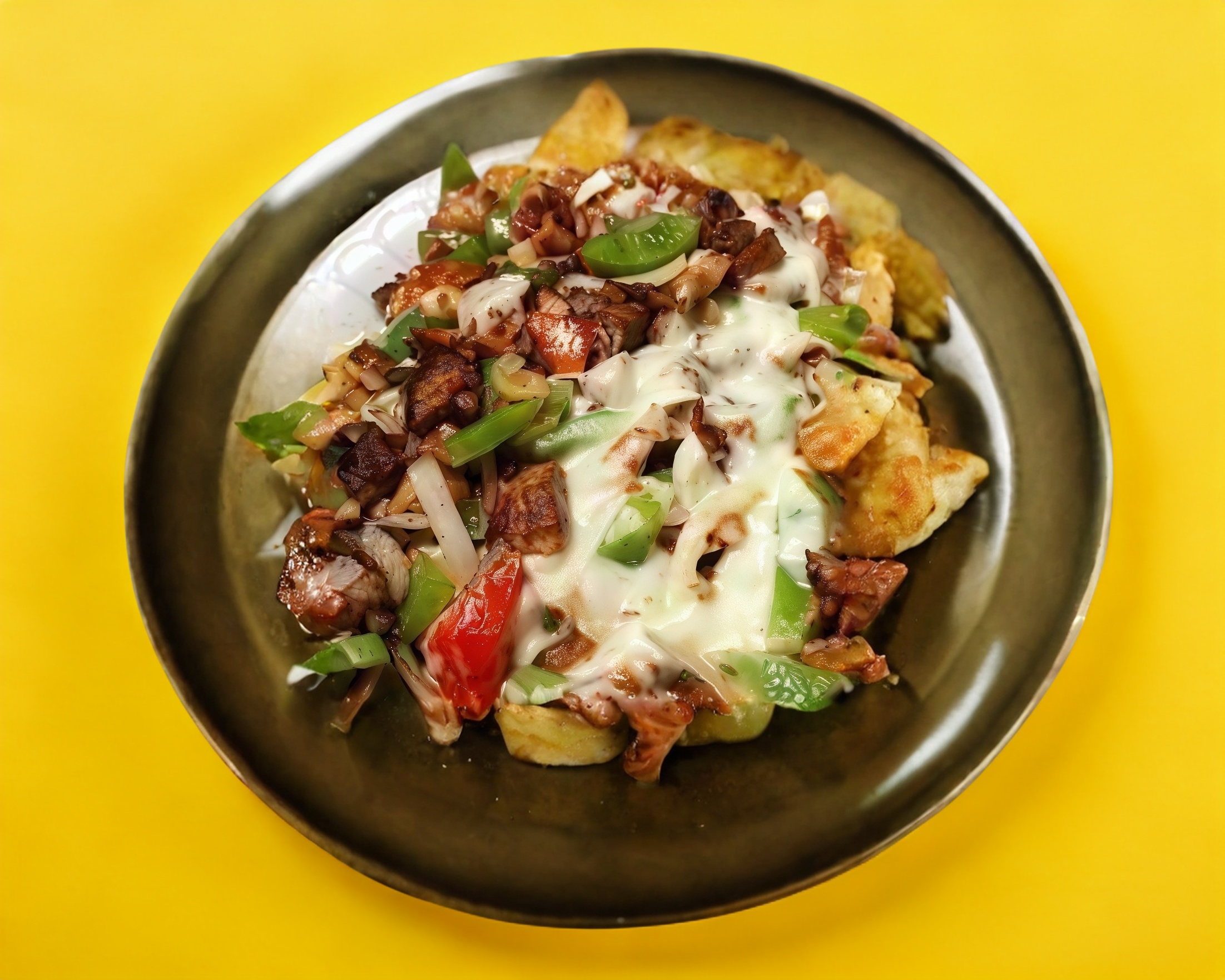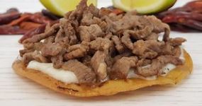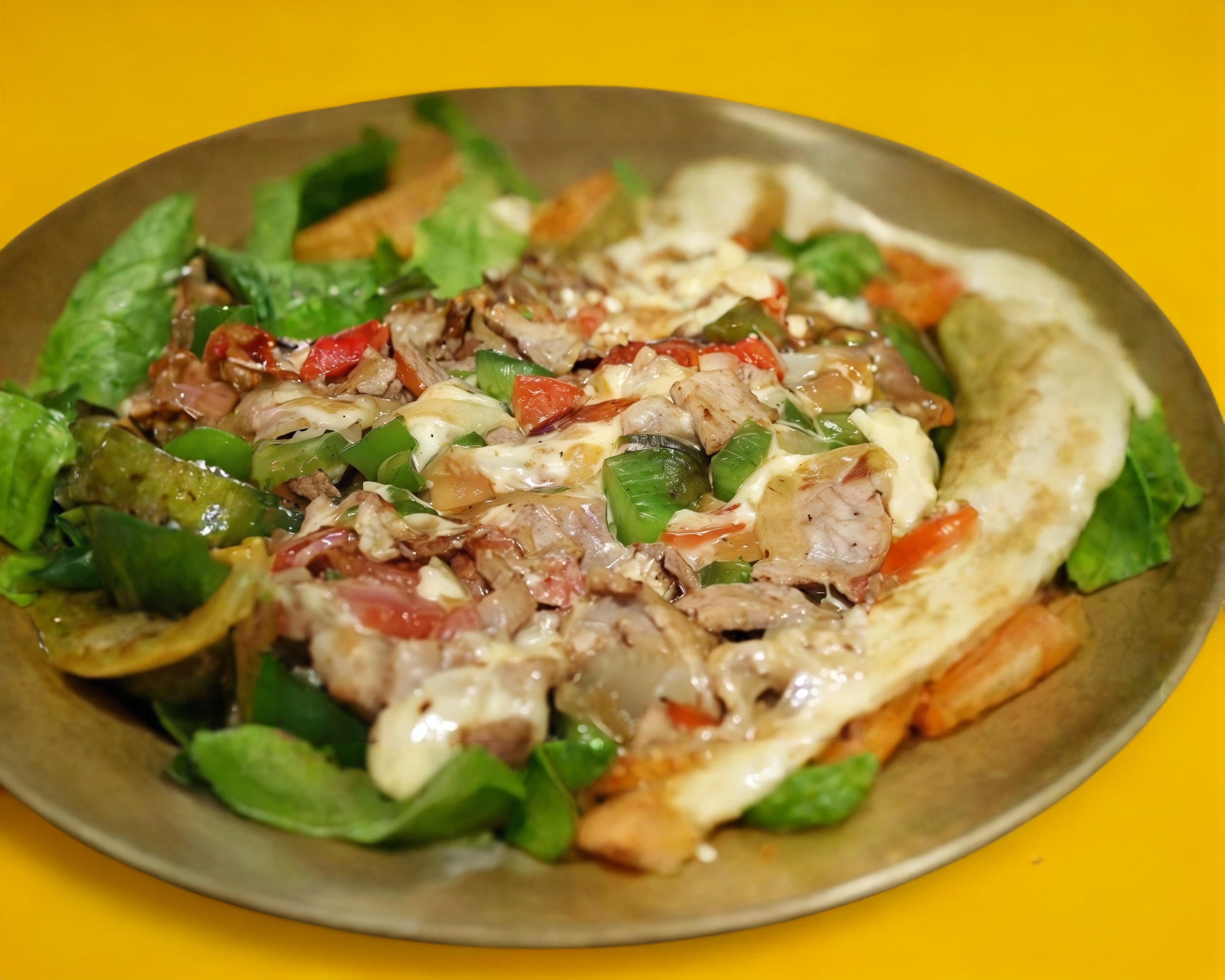Arrachera con queso, frijoles, mayonesa, cebolla, jitomate y aguacate