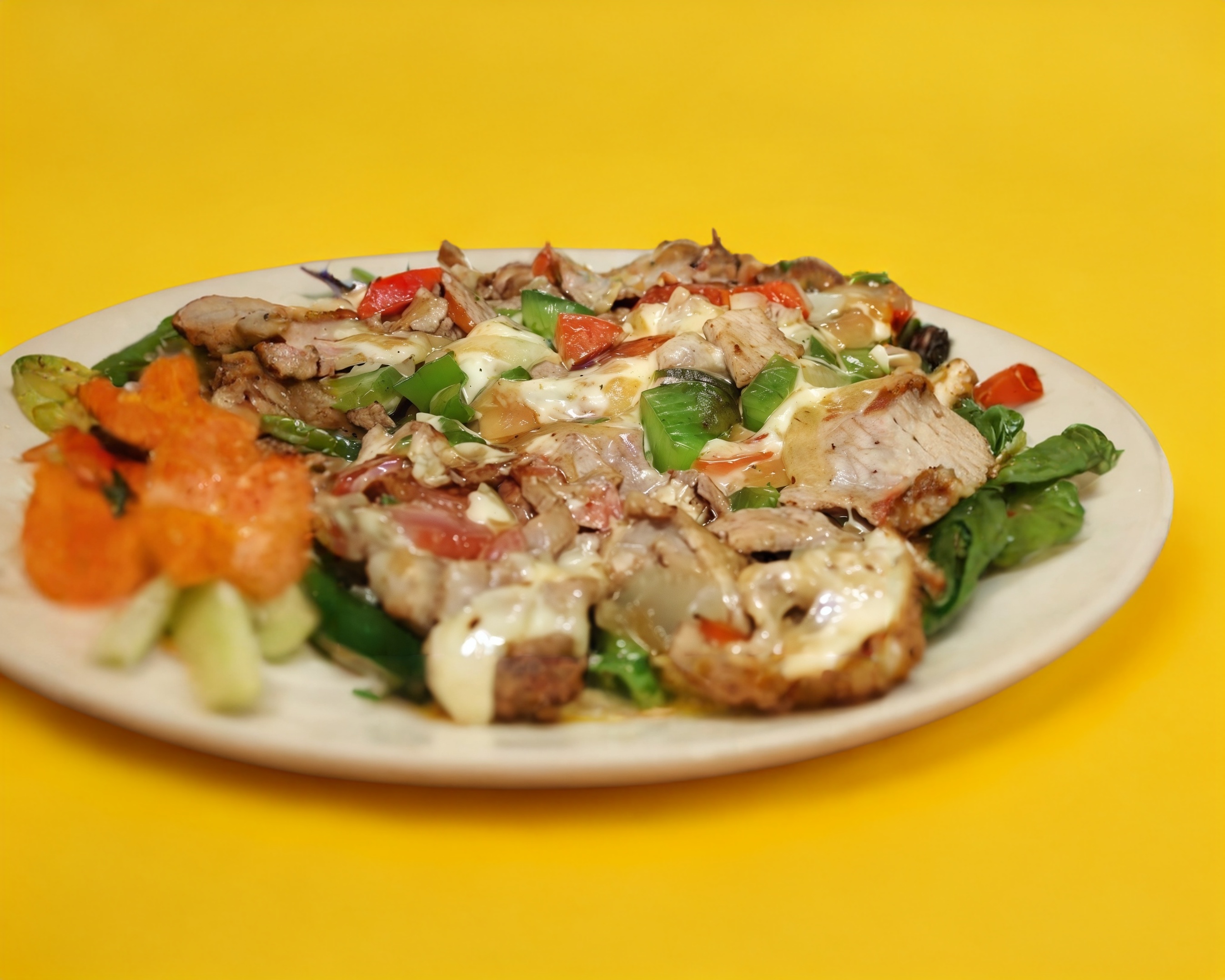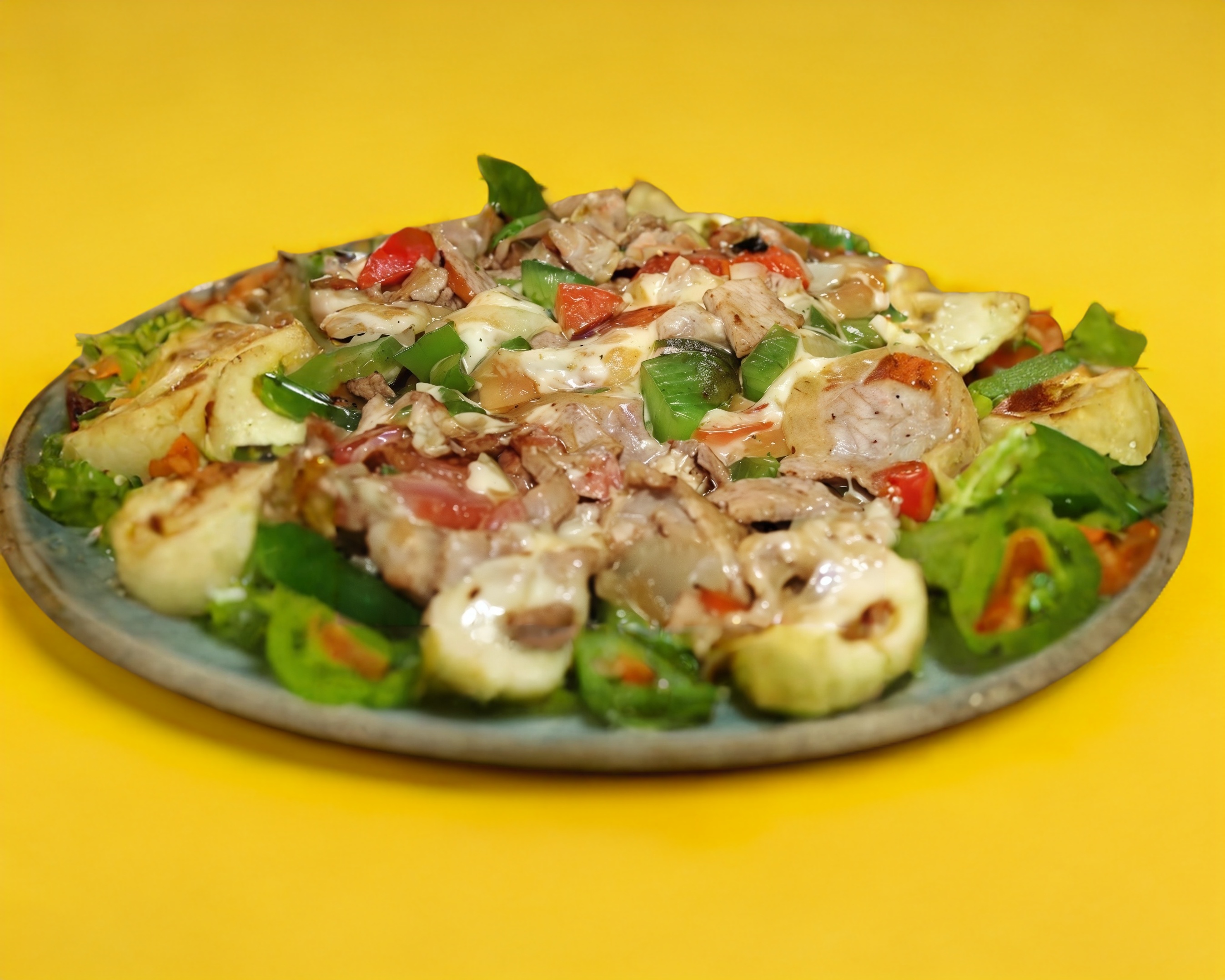 Pastor, jamon, tocino, cebolla, pimiento y queso