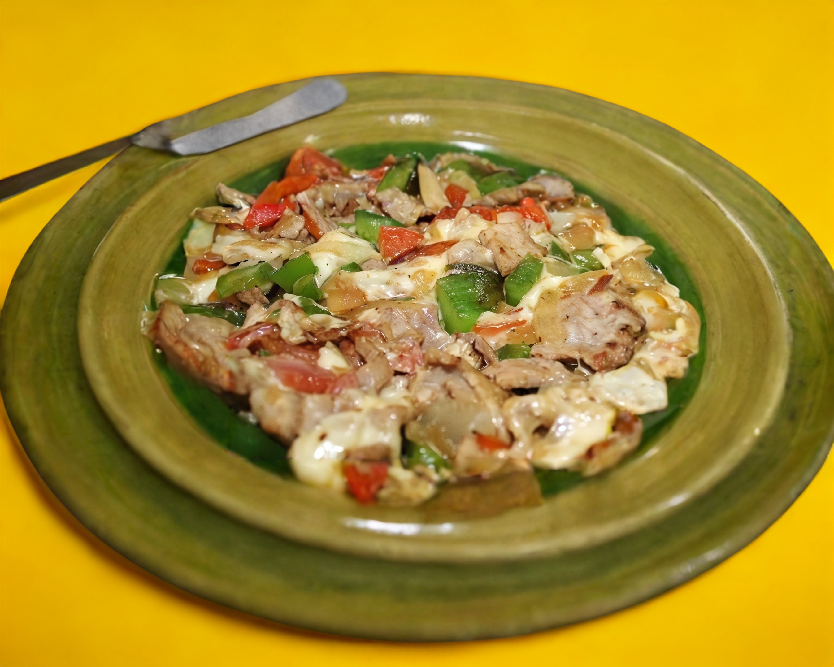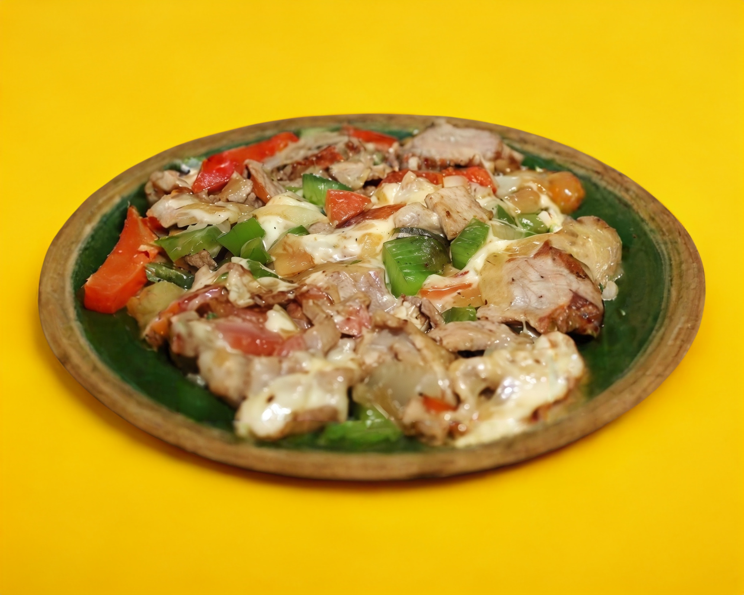 Alambre combinado con queso, puedes elegir 2 carnes, jamón, tocino, cebolla, pimiento morrón y tortillas de maíz.