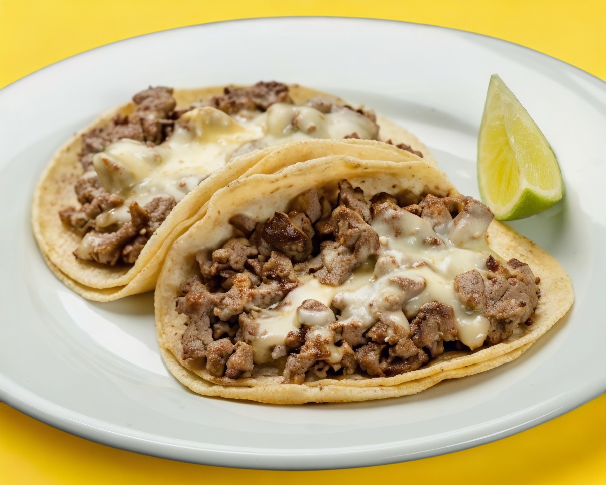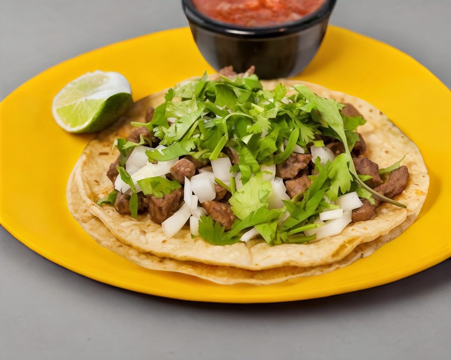 1 Taco de bistec con queso, doble tortilla grande de maiz.