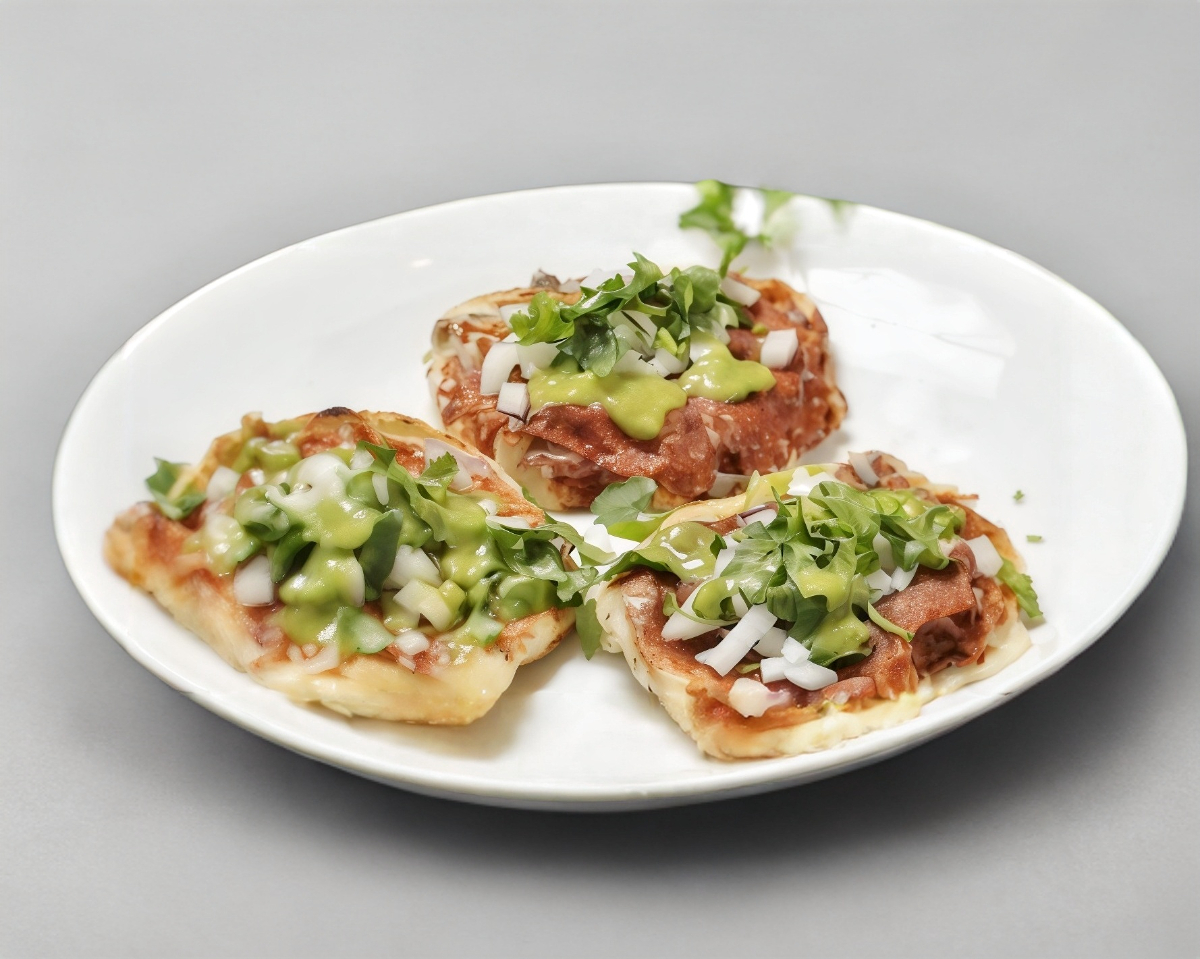 Orden de 3 volcanes de pastor y queso cebolla, cilantro y piña