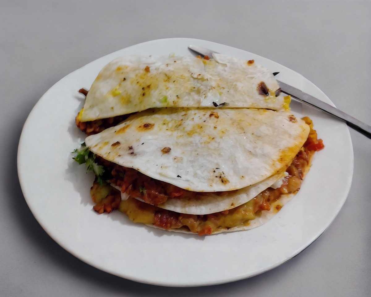 Suadero, queso, frijoles, aguacate, jitomate cebolla y cilantro.