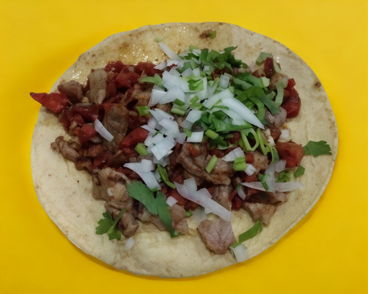 1 Taco de pastor con queso, tortilla grande. cebolla, ceilantro y piña