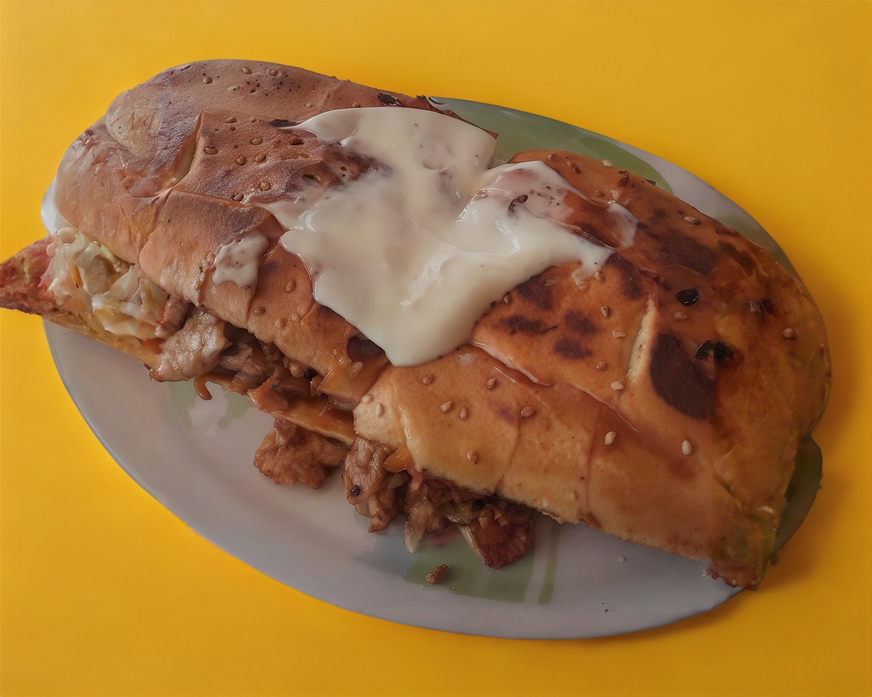 Suadero con queso, frijoles, mayonesa, cebolla, jitomate y aguacate