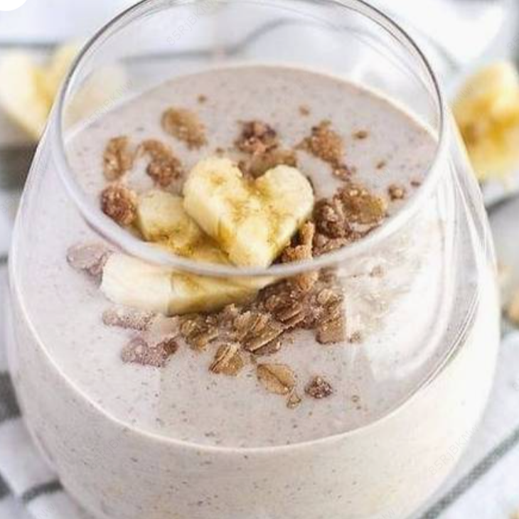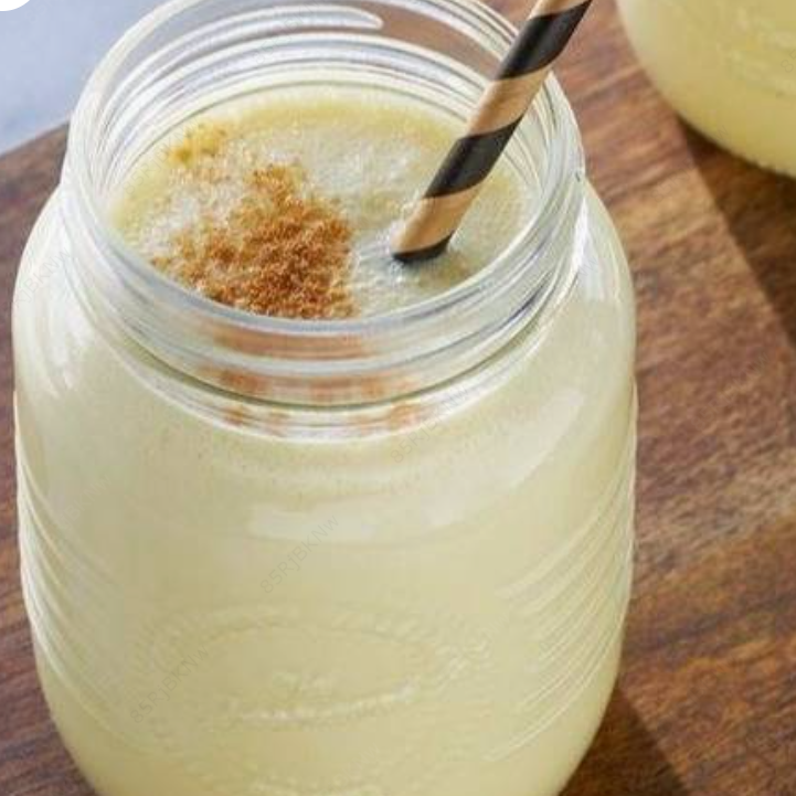 Licuado preparado con plátano, vainilla, azúcar y leche.