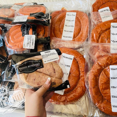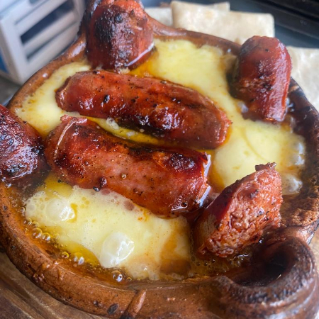 Pequeña porción de chorizo argentino, chistorra, arrachera y papas francesas, ideal para botanear.