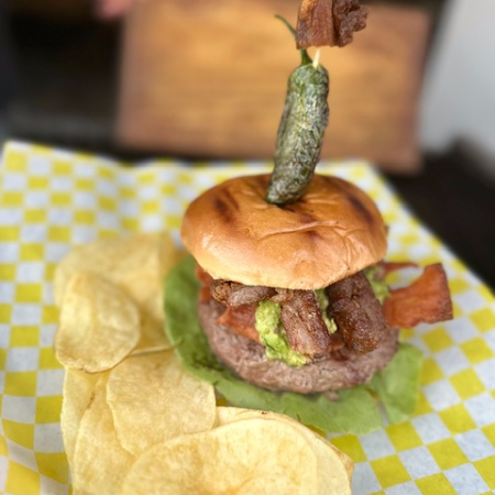 Sirloin, chistorra, chorizo argentino o chorizo mexicano, papa cuidadosamente sazonada cocinada al horno, acompañada con la carne de tu elección y un toque de crema ácida y cebollín picado.. como en el mero norte!!.