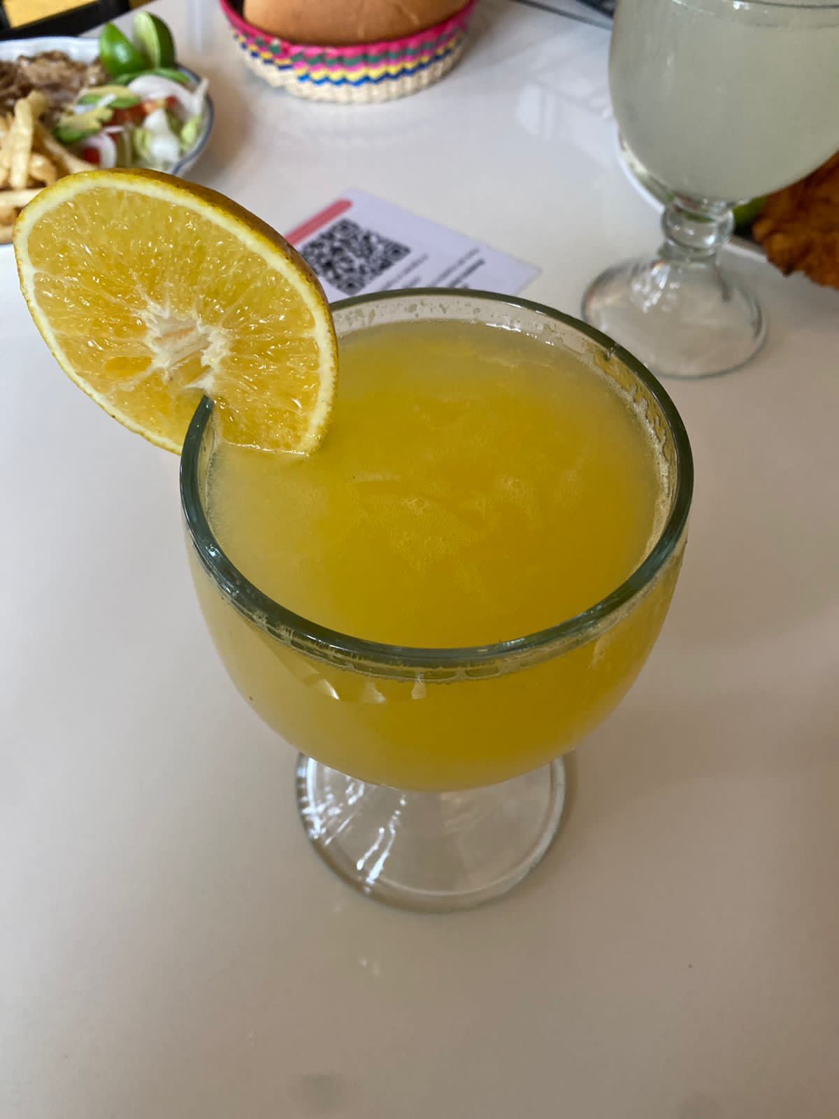 Naranjada Mineral Aproximadamente 940mL. Elaborada con jugo de naranja fresco, endulzada con jarabe natural, con agua mineral y hielos.