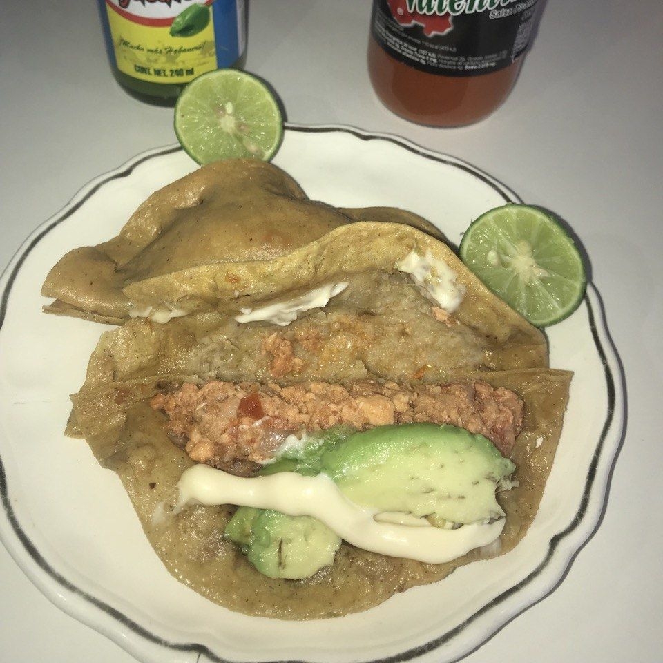 Orden de 3 quesadillas fritas de pescado sazonado con cebolla y jitomate, terminadas con aguacate y mayonesa.