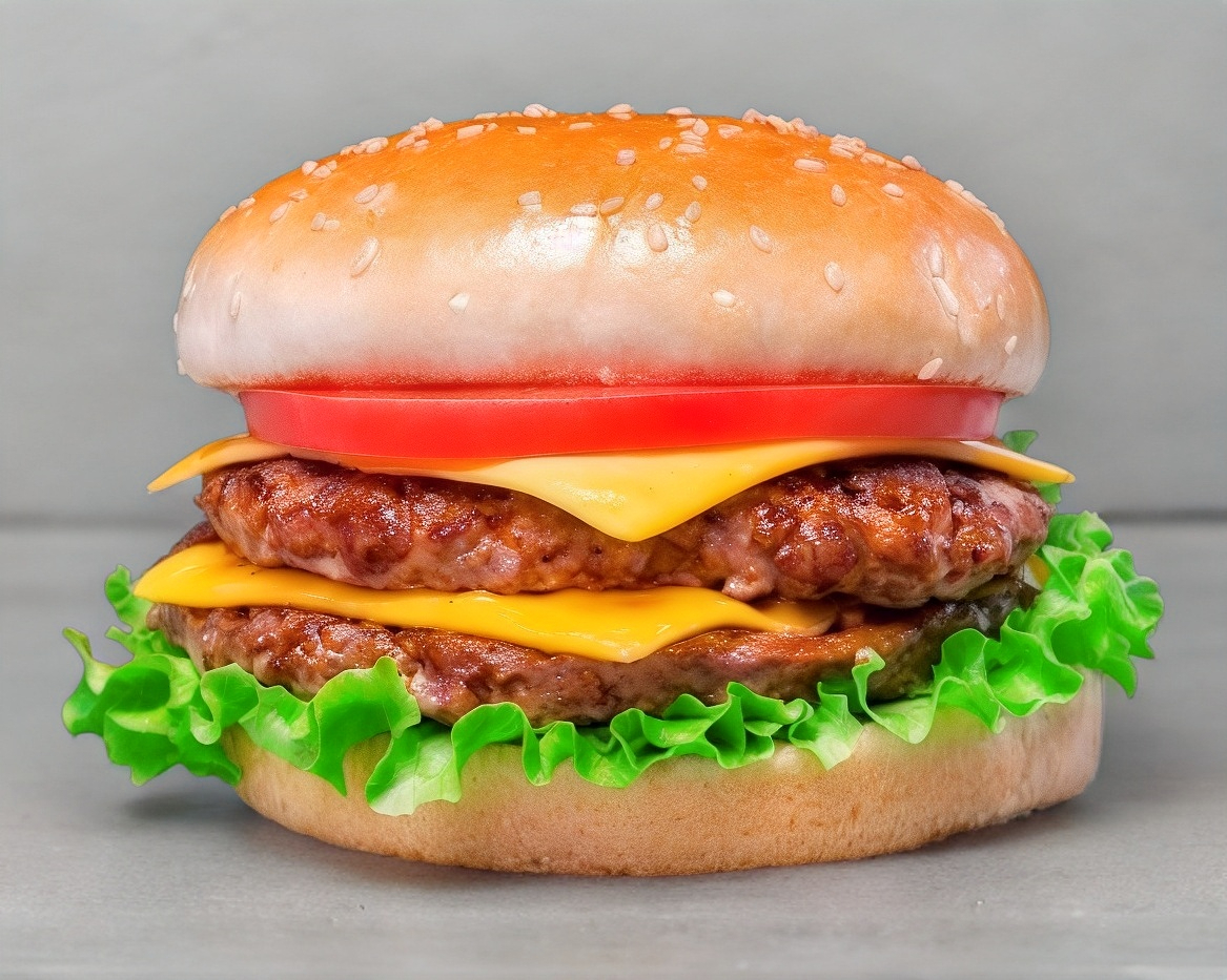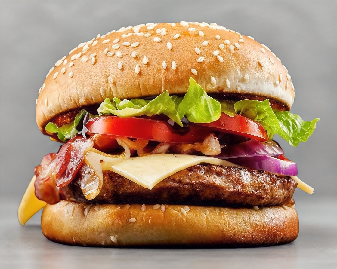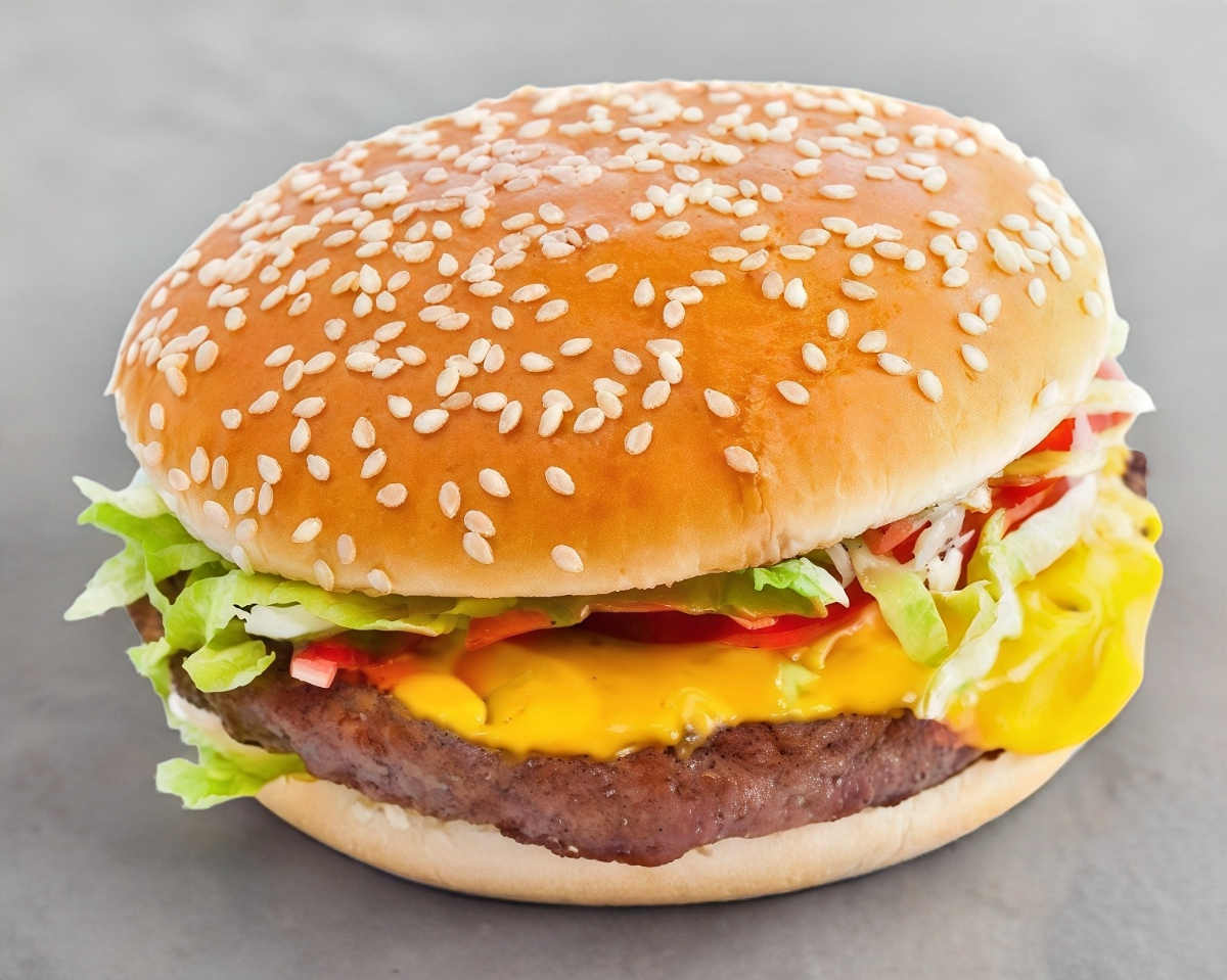 113 gr. de carne de res, queso amarillo, jitomate, cebolla, rajas y lechuga.