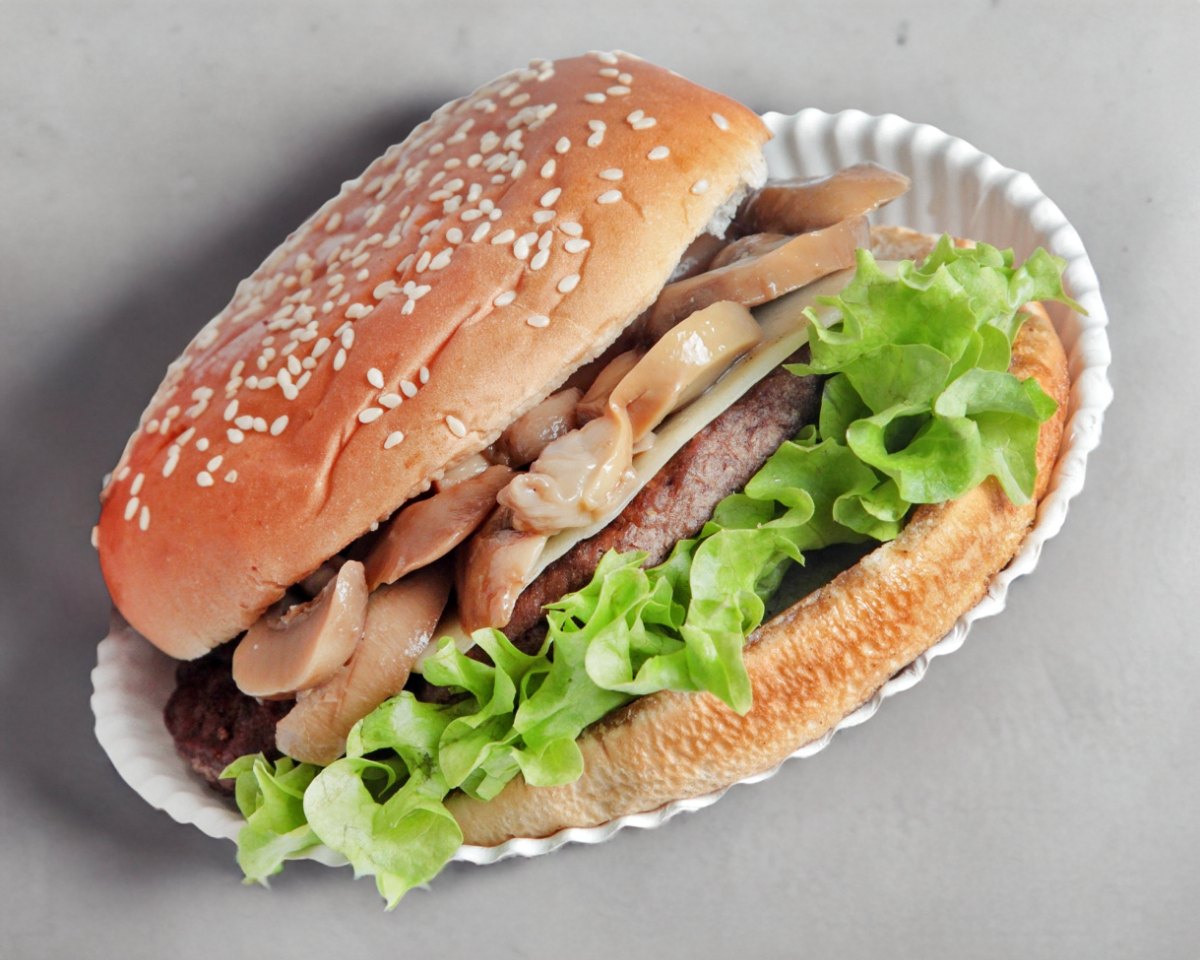 113 gr. de res, champiñones, queso manchego, jitomate, cebolla, rajas y lechuga.